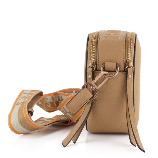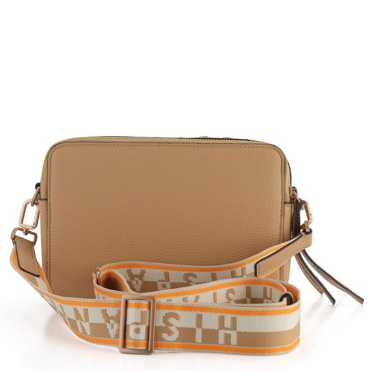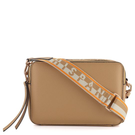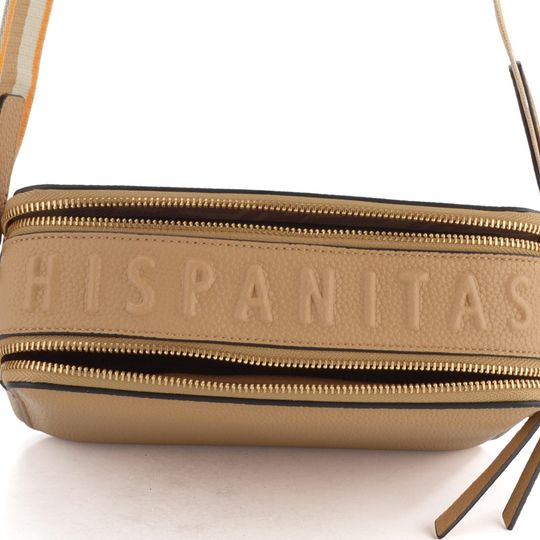 Obohaťte svůj šatník o originální crossbody kabelku od značky Hispanitas, která zaujme nejen svým designem, ale i praktičností. Tato kabelka v béžové barvě je vyrobena z pevné strukturované syntetiky, což zaručuje, že si udrží svůj tvar. Díky širokému textilnímu ramennímu popruhu s délkou regulací (cca 90 - 145 cm) ji můžete nosit klasicky nebo jako crossbody. Kování v matném bronzovém odstínu dodává kabelce elegantní vzhled, zatímco velké vytlačované logo značky na horní straně podtrhuje její jedinečnost. Kabelka se uzavírá na dva zipy a uvnitř najdete jednu zipovou kapsičku na cennosti a jednu malou kapsičku bez uzavření. S rozměry 23 cm šířka, 15,5 cm výška a 7,5 cm hloubka dna je ideální pro každodenní nošení. Vyberte si kvalitu a styl, který přináší značka Hispanitas.