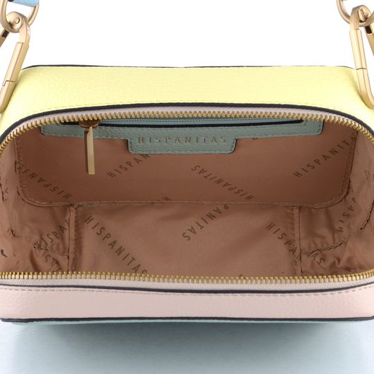 Zažijte eleganci a funkčnost s crossbody kabelkou od značky Hispanitas. Tato malá, ale prostorná kabelka je ideální volbou pro ty, kteří hledají stylový doplněk na každodenní nošení. Vyrobena z pevné strukturované syntetiky, která zaručuje, že kabelka drží svůj tvar, nabízí pěknou kombinaci mintové, tělové, pastelové žluté a blankytně modré barvy. Díky odepínatelnému textilnímu ramennímu popruhu s regulací délky je nošení pohodlné a přizpůsobivé. Praktické uzavírání na dvoucestný zip umožňuje snadný přístup k obsahu, zatímco vnitřní kapsičky poskytují prostor pro cennosti. S rozměry 20 cm x 12 cm x 7 cm je ideální na nezbytnosti, které potřebujete mít vždy po ruce.