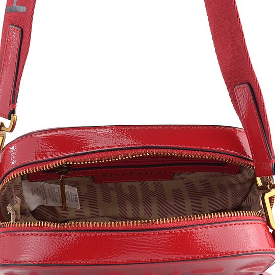 Objevte kouzlo elegance s malou crossbody kabelkou od značky Hispanitas! Tato kabelka zaujme svým oblým tvarem a jasnou červenou barvou, která rozzáří každý outfit. Vyrobena z pevné mačkané lakované syntetiky, drží svůj tvar a zaručuje dlouhou životnost. Kabelka se pyšní vytlačovaným logem značky na přední straně a kováním v barvě mědi, které dodává na luxusním vzhledu. Díky širokému textilnímu ramennímu popruhu s regulací délky (90-160 cm) ji můžete nosit klasicky nebo jako crossbody. Dvoucestný zip umožňuje pohodlné otevření až k samému dnu, kde najdete dobře organizovaný vnitřní prostor s jednou zipovou kapsičkou na cennosti a malou kapsičkou bez uzavření. Rozměry kabelky jsou: šířka 20,5 cm, výška 13 cm a hloubka dna 6 cm, které je opatřeno kovovými opěrkami. Perfektní volba pro podzimní a zimní sezónu 2023/24.