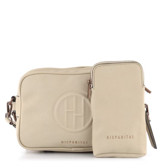 Stylová dámská crossbody kabelka v menší velikosti a v příjemné světle béžové barvě.