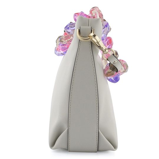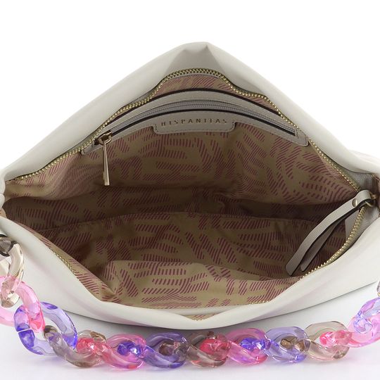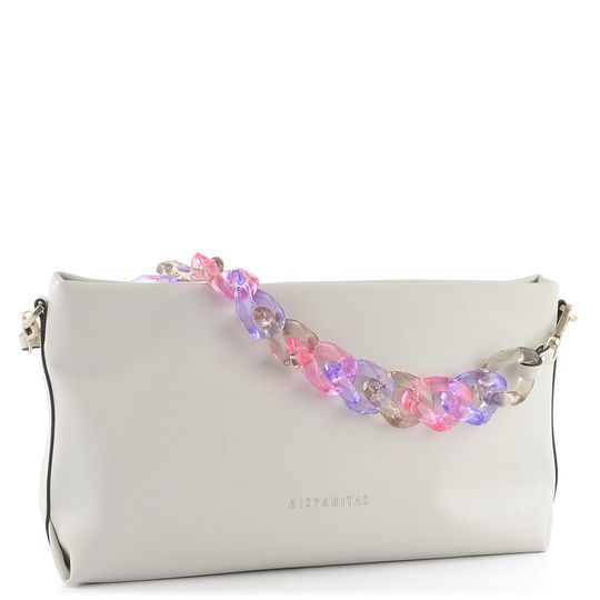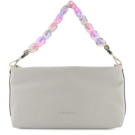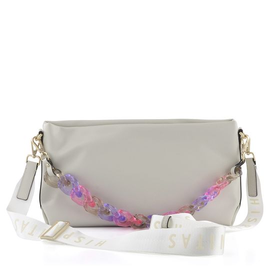 Stylová dámská kabelka ve světlé barvě s jedním odepínatelným barevným a jedním sportovním crossbody popruhem.