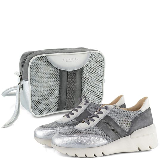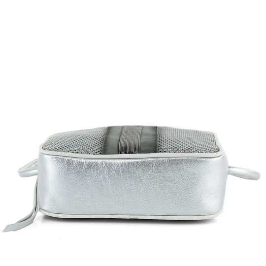 Stylová dámská crossbody kabelka ve sportovnějším střihu a v krásně sladěných šedých a stříbrných odstínech.