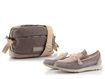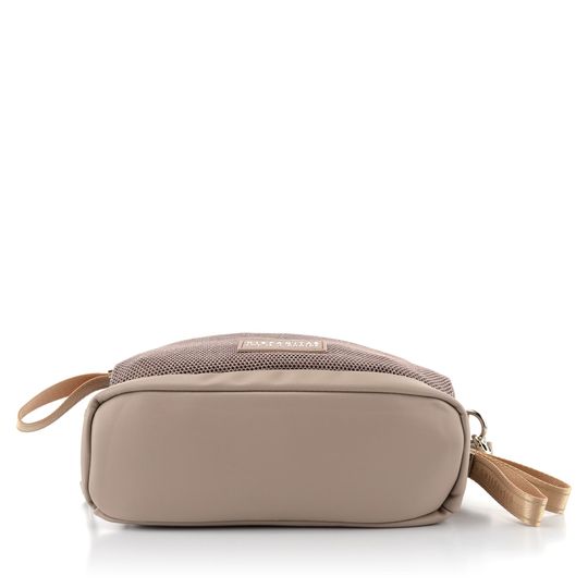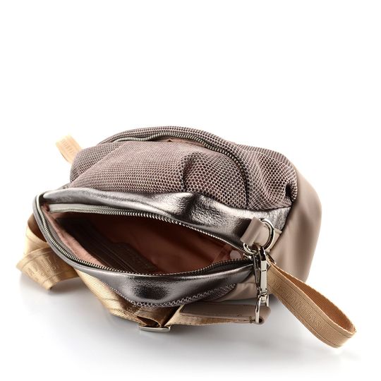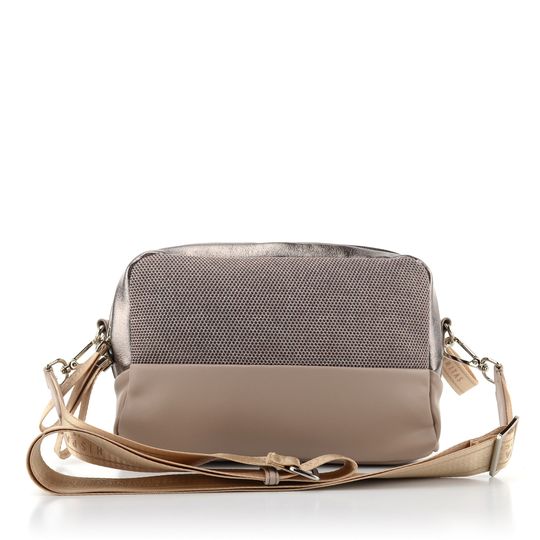 Dámská módní crossbody kabelka v nugátové a metalické kombinaci barev.