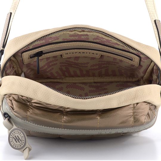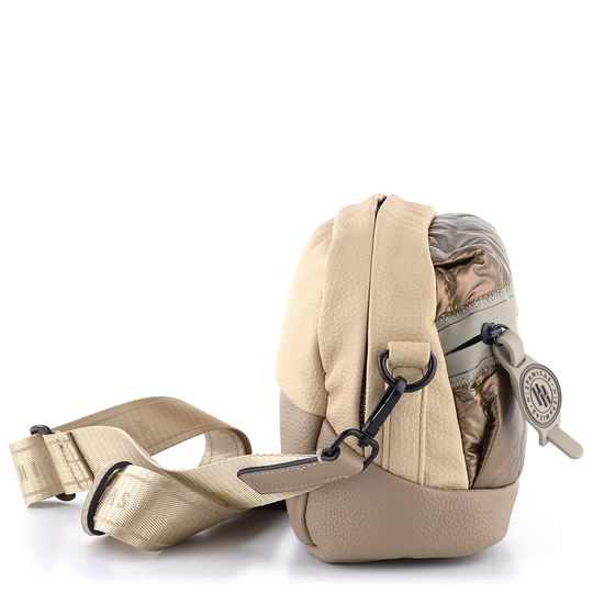 Stylová dámská crossbody kabelka ve sportovnějším střihu a v pěkné barevné kombinaci, s prošívanou lesklou šusťákovinou na přední straně.