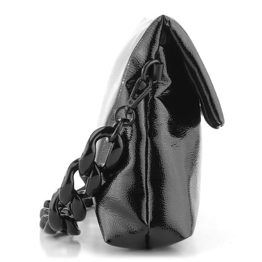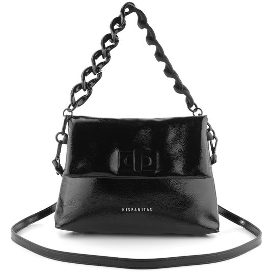 Elegantní dámská kabelka v módní lakované černé barvě, s odepínatelným řetízkovým a crossbody popruhem.