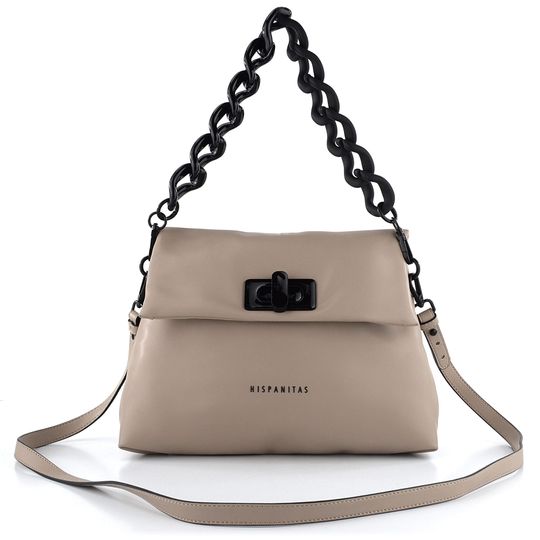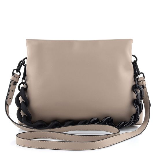 Elegantní dámská kabelka v módní šedobéžové barvě, s odepínatelným řetízkovým a crossbody popruhem.