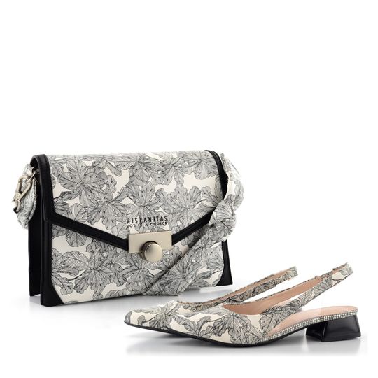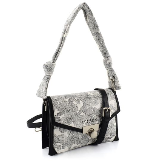 Originální elegantní dámská kabelka s potiskem v černo-smetanové barvě.
