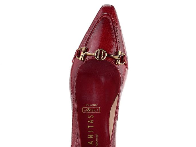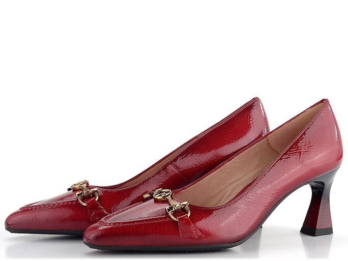 Nová kolekce značky Hispanitas přináší elegantní dámské lodičky, které zaujmou na první pohled. Tyto lodičky vynikají lakovanou kůží v nádherném malinově červeném odstínu se stínováním. Elegantní špičatý střih a ozdobná kovová sponka v zastřené mosazné barvě dodávají botám jedinečný vzhled.
