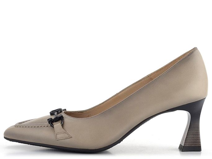 Ozdobná kovová sponka v černé barvě a originálně tvarovaný podpatek se stínováním dodávají lodičkám sofistikovaný vzhled. Celokožená podšívka a flexibilní podešev s jemným protiskluzovým vzorkem zajišťují pohodlí a bezpečnost při každém kroku. Výška podpatku 6,8 cm je ideální pro celodenní nošení.