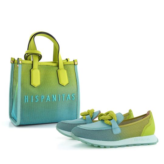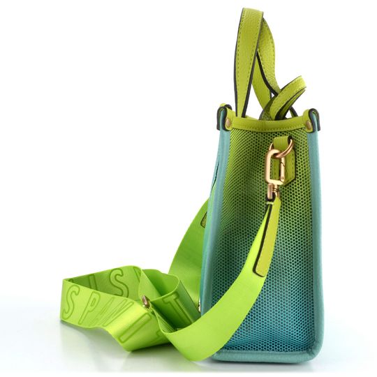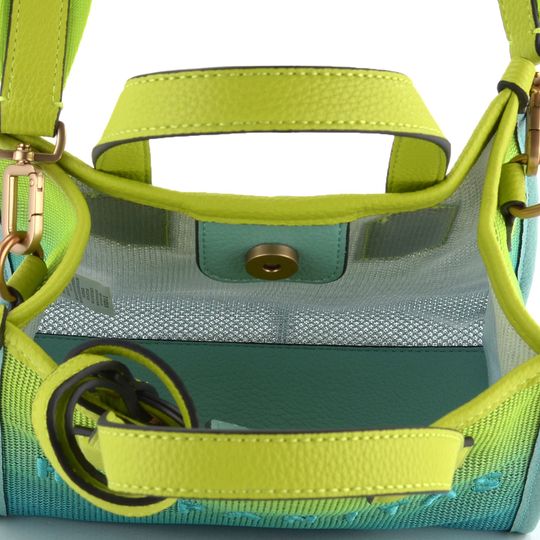 Dámská kabelka značky Hispanitas Aguamarina/Kiwi BV243240 je ideální volbou pro ty, kdo hledají spojení stylu a praktičnosti. Tato kabelka zaujme svým originálním provedením ze síťoviny a strukturované syntetiky, což jí dodává lehkost a jedinečný vzhled. Kombinace světle tyrkysové a světle zelené barvy (kiwi) spolu s kováním v matném bronzovém odstínu činí z této kabelky skutečný módní kousek.