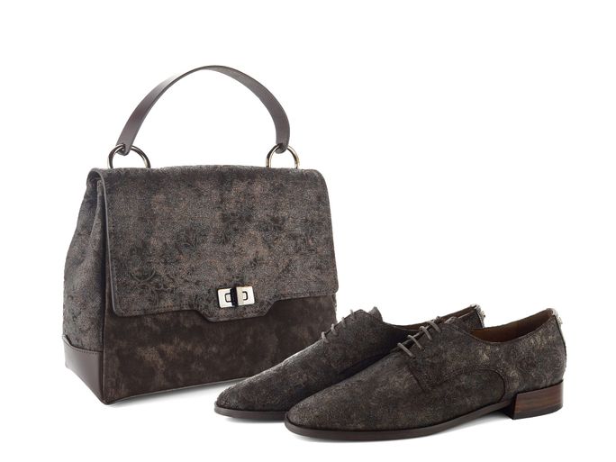 Luxusní dámská kabelka ze zabroušené kůže s originálním brokátovým potiskem.
