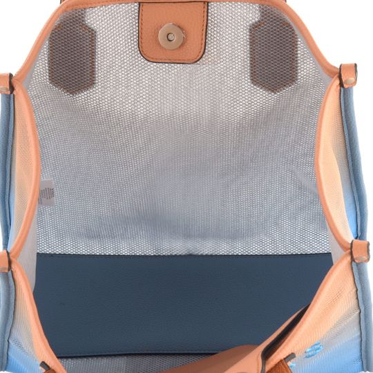 Stylová a originální dámská kabelka od značky Hispanitas je ideální volbou pro ty, kdo hledají kombinaci elegance a sportovního šarmu. Tato kabelka vyniká výraznou kombinací světle modré a broskvově oranžové barvy, která zaujme na první pohled. Vyrobena z lehké síťoviny a strukturované syntetiky, je nejen módní, ale i praktická. Díky větší velikosti pohodlně pojme formát A4, což oceníte při každodenním nošení. Kabelka je shora uzavíratelná na magnet a uvnitř najdete zipovou etuji na pásku provlečeném skrz madlo. Madla do ruky jsou vzdálená od hrany kabelky 24 cm, což zajišťuje pohodlné nošení. Rozměry kabelky jsou šíře 34 cm, výška 30 cm a hloubka dna 12 cm. Etuje má rozměry šíře 26,5 cm a výška 17 cm. Kabelka je módní záležitostí, proto ji nepřetěžujte s ohledem na použitý materiál. Tato kabelka z kolekce jaro/léto 2024 je skvělým doplňkem pro každou příležitost.