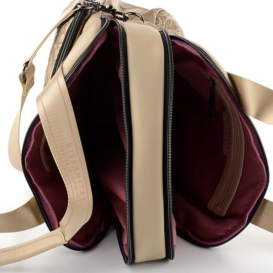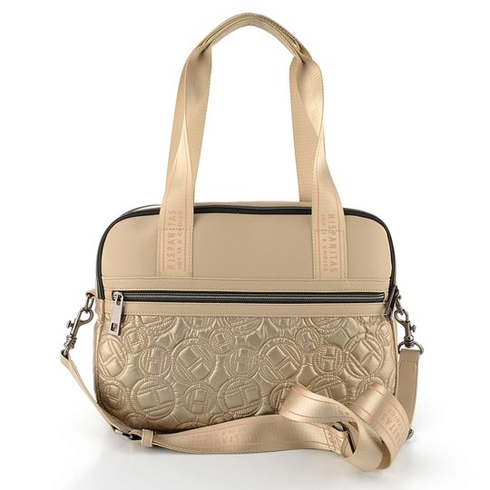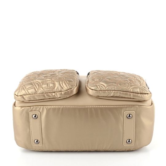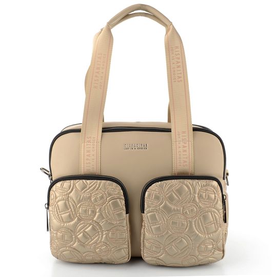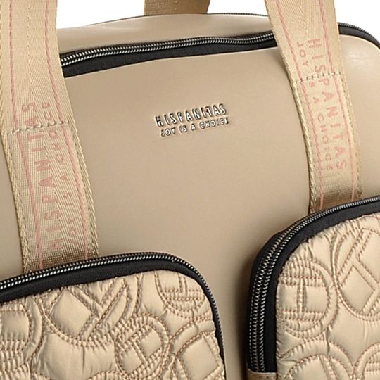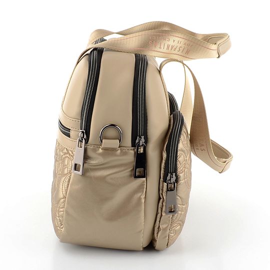 Kombinovaná dámská kabelka v módním tvaru, vyrobena z jemné imitace kůže a prošívané textilie.