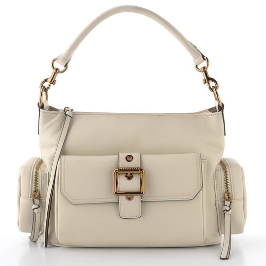Stylová dámská crossbody kabelka v krémové barvě s kapsičkami a dvěma odepínatelnými popruhy.
