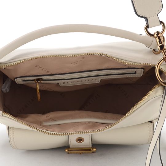 Dámská crossbody kabelka značky Hispanitas spojuje styl a praktičnost v jednom. Je vyrobena z poddajné hladké syntetiky v příjemné krémové barvě, která se snadno kombinuje s různými outfity. Kabelka střední velikosti nabízí dostatek prostoru pro všechny vaše nezbytnosti a její vnitřní výbava zahrnuje zipovou kapsičku na cennosti a malou kapsičku bez uzavření.