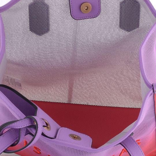 Vyrobena z lehké síťoviny a strukturované syntetiky, kabelka nabízí sportovně-elegantní střih a výraznou kombinaci lososově červeného a fialového odstínu. Na přední straně je vyšívané logo značky, což dodává kabelce na exkluzivitě. Kabelka je shora uzavíratelná na magnet, což zajišťuje snadný přístup a bezpečnost vašich věcí.