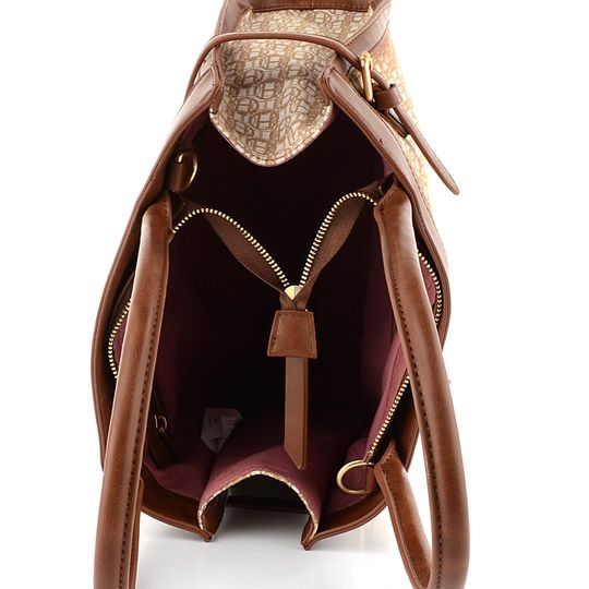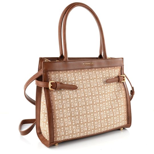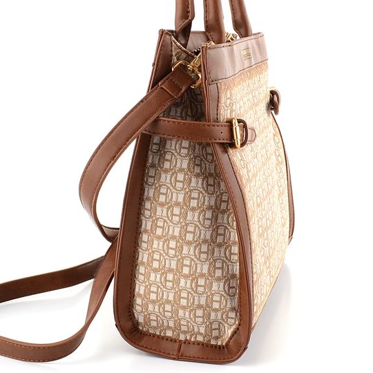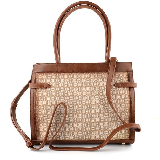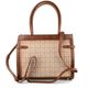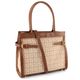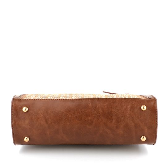Trendová dámská kabelka v módním střihu v kombinaci hladké syntetiky a vytkávané textilie.