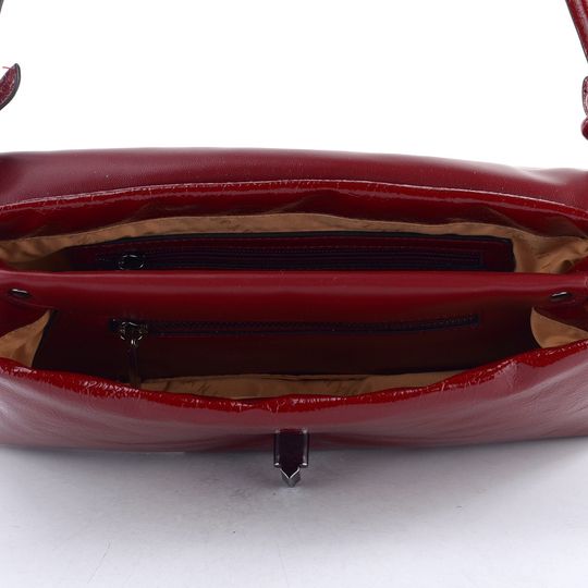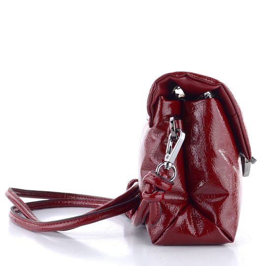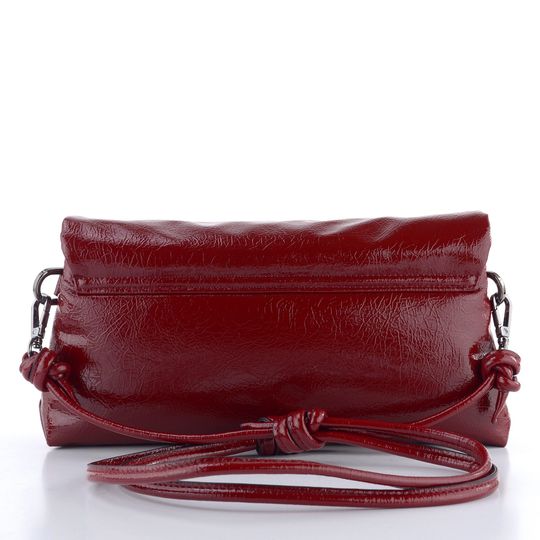 Luxusní dámská kabelka v elegantním střihu a lakované vínové barvě s klopou na zámeček.