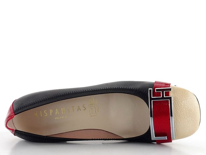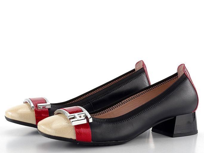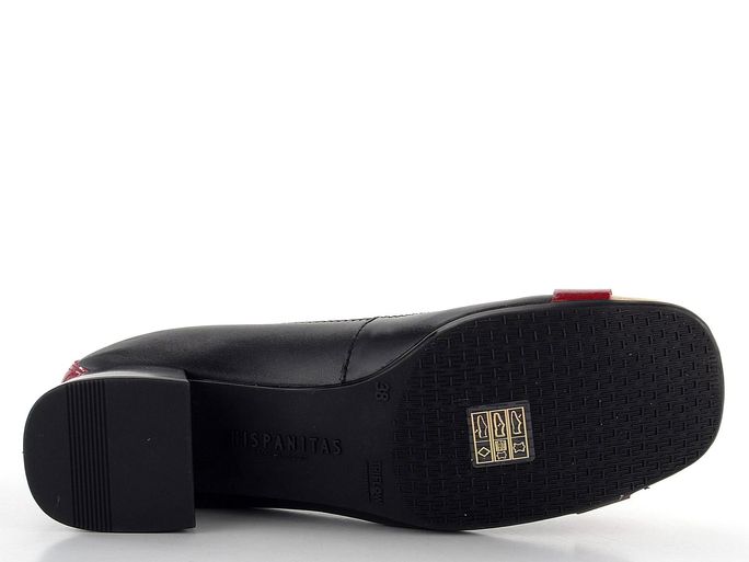 Dámské osobité lodičky značky Hispanitas v originální barevné kombinaci jsou ideální volbou pro podzimní a zimní sezónu. Kombinace černé, červené a smetanové barvy dává těmto botám jedinečný vzhled, který zaujme na první pohled. Svršek je vyroben z lakované a hladké kůže, což zajišťuje dlouhou životnost a elegantní vzhled. Pohodlný střih s prostornou karé špičkou a pruženka v obvodu pro optimální padnutí poskytují maximální komfort. Vnitřní podšívka z imitace kůže a kožená stélka zaručují příjemné nošení. Díky technologii TRIFLOW s třemi polstrovanými vrstvami ve stélce je chůze měkká a komfortní. Flexibilní latexová podešev a stabilní podpatek o výšce 3,5 cm v černém lesku dodávají botám nejen styl, ale i stabilitu.