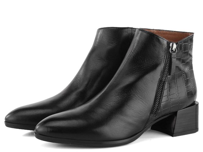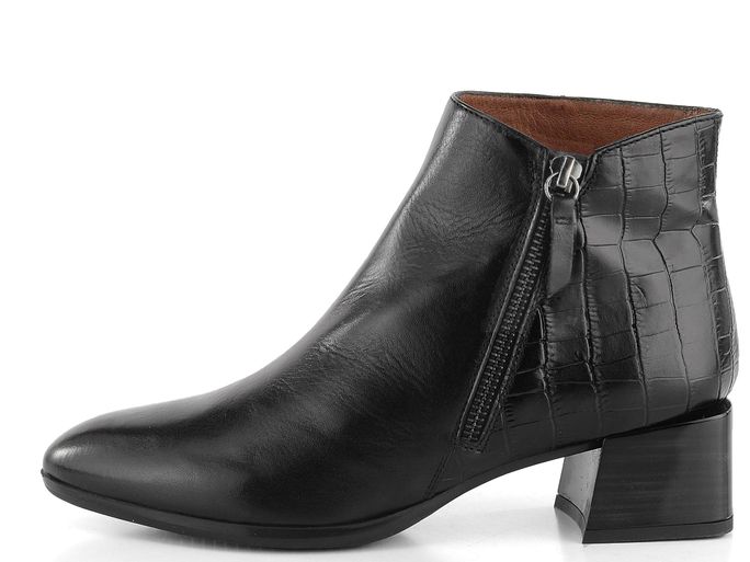 Luxusní dámský kotník v originálním pojetí, vyrobený z hladké a vytlačované kůže s ozdobným, funkčním zipem.