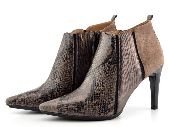 Elegantní dámský kotník se špičkou a sladěným svršek, převládá módní hadinka.