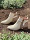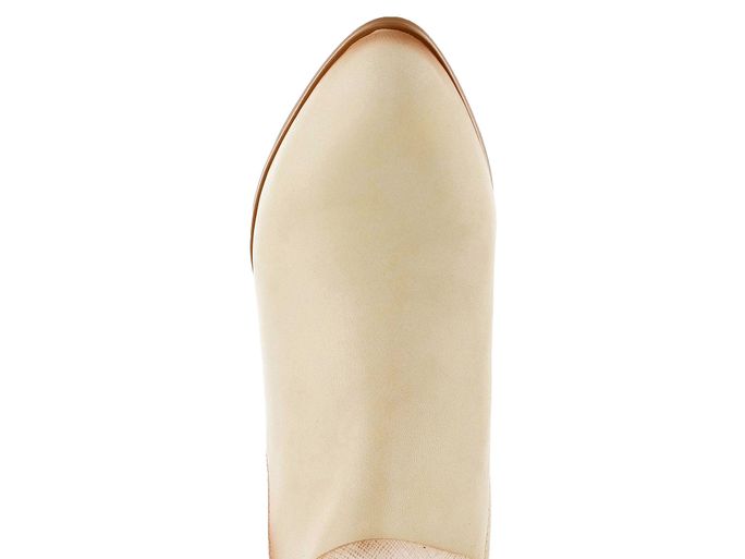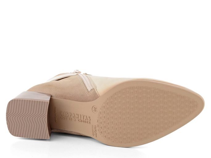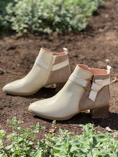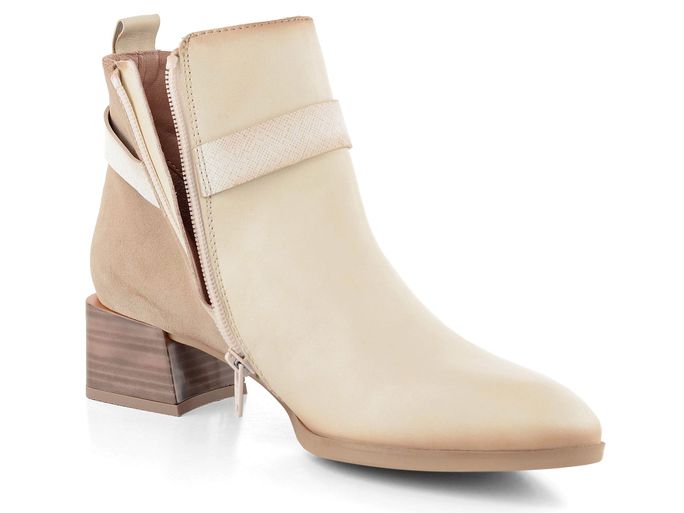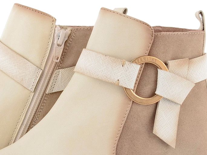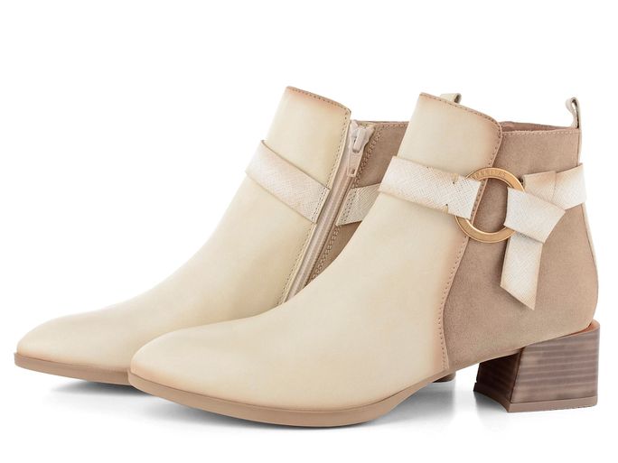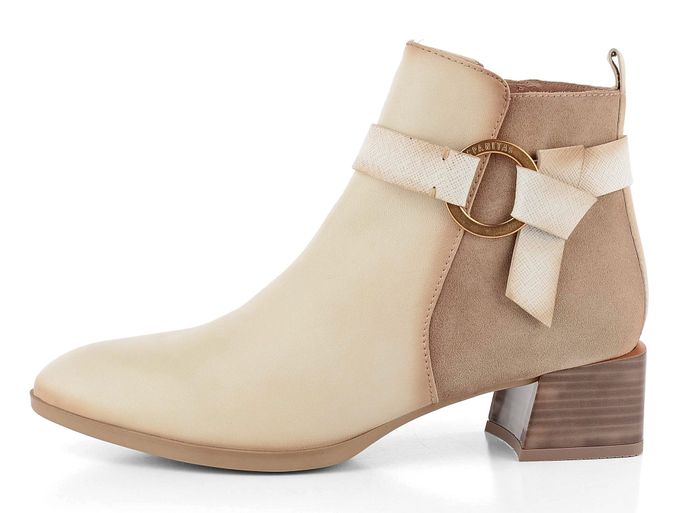 Dámský kotník z kombinace hladké a semišové kůže s kruhovou ozdobou přes kotník.