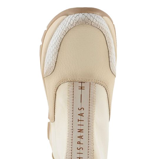 Objevte eleganci a pohodlí v jednom s dámskými kotníkovými botami na módní vysoké platformě od značky Hispanitas. Tyto boty, ideální pro podzimní a zimní sezónu, jsou navrženy s důrazem na detail a kvalitu. Svršek je vyroben z kombinace lakované syntetiky a hladké kůže se strukturou, což jim dodává jedinečný vzhled. Krémový odstín je doplněn světle béžovou a odraženou bílou barvou s nádechem do šeda, což vytváří jemný a sofistikovaný vzhled.