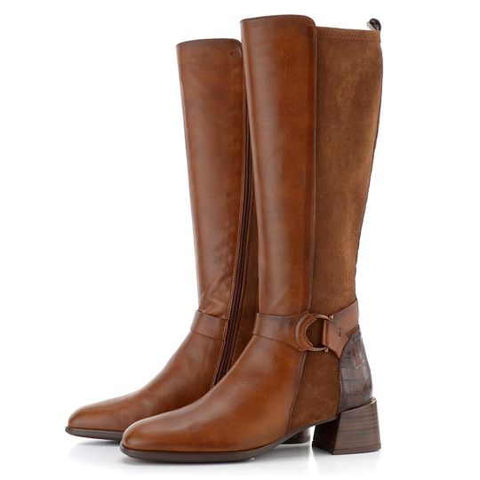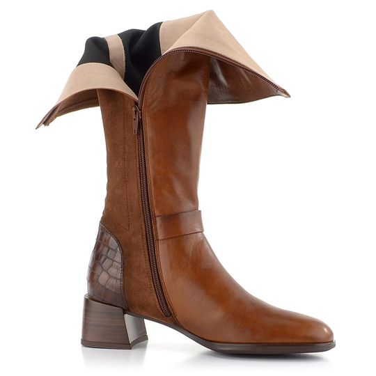 Dámské luxusní kozačky v přírodní hnědé barvě se strečí na lýtku a vnitřní měkkou stélkou.