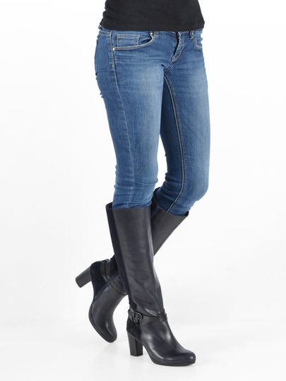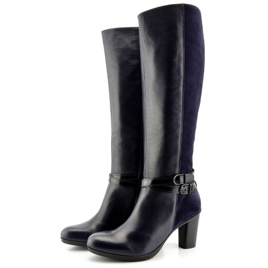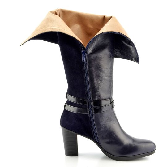 Dámské elegantní nevyteplené kozačky v tmavě modré barvě.