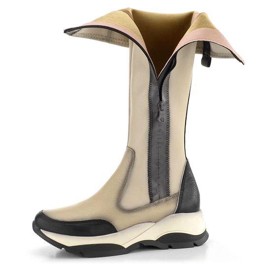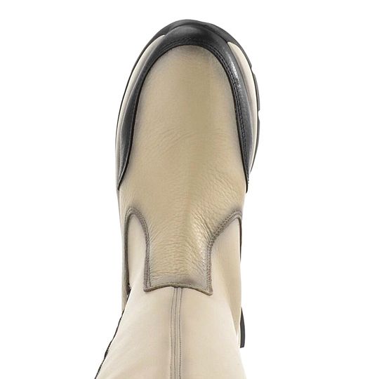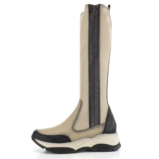Originální dámské kozačky ve sportovním střihu a se zajímavě řešeným zipem na vnější straně.