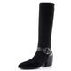 Elegantní dámské kozačky na podpatku od značky Hispanitas v černé barvě jsou ideálním doplňkem pro podzimní a zimní období. Tyto kozačky kombinují pružnou textilii a semišovou kůži, což zajišťuje nejen styl, ale i pohodlí. S užší kulatou špičkou a funkčním zipem na vnitřní straně se snadno obouvají.
