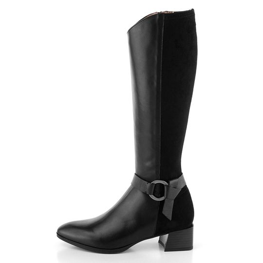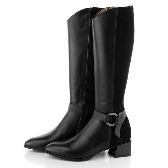 Dámské luxusní kozačky v černé barvě se strečí na lýtku a vnitřní měkkou stélkou.