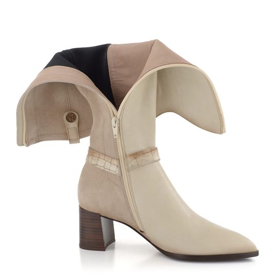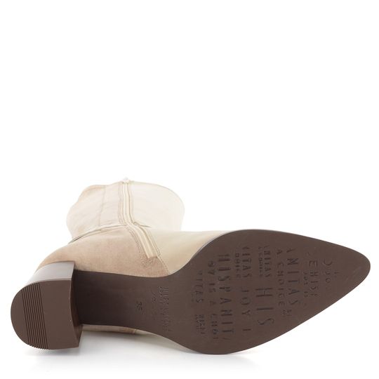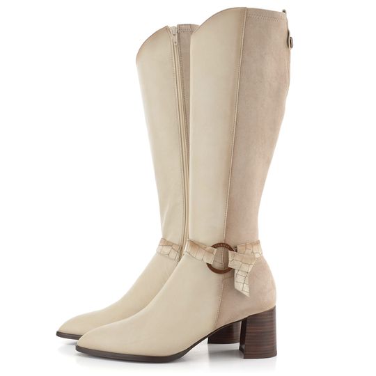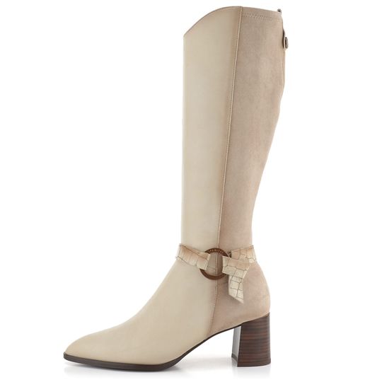Dámské luxusní kozačky ve světlé béžové barvě se strečí na lýtku a vnitřní měkkou stélkou.