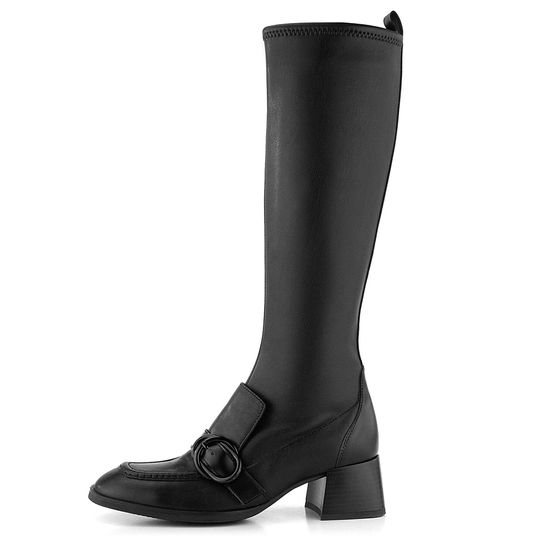 Luxusní dámské kozačky z prémiové kůže a pružné syntetiky v lýtkové části.