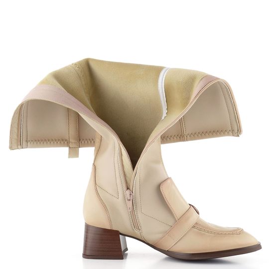 Luxusní dámské kozačky z prémiové kůže a pružné syntetiky v lýtkové části.