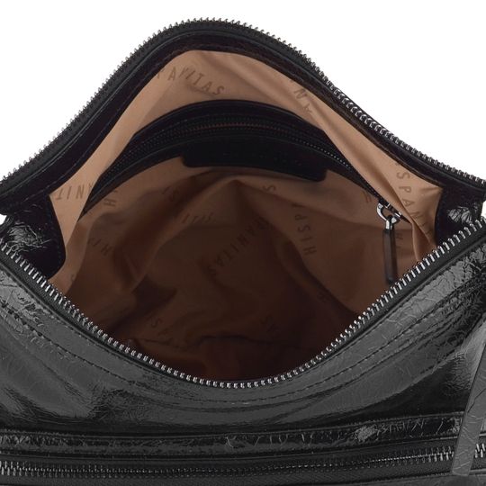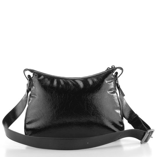 Dámská módní kabelka od značky Hispanitas spojuje elegantní design s praktickým provedením. Je vyrobena z poddajné mačkané syntetiky s lakovanou povrchovou úpravou, která dodává kabelce šmrnc. Její černá barva je univerzální a snadno se kombinuje s různými outfity.