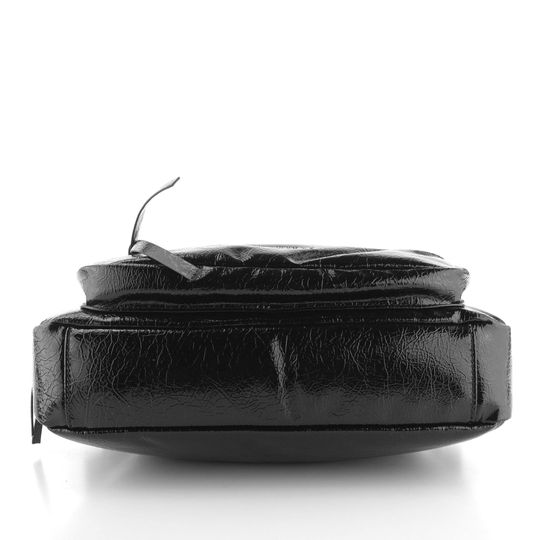 Dámská kabelka střední velikosti v černém lakovaném provedení se zipovými kapsami.