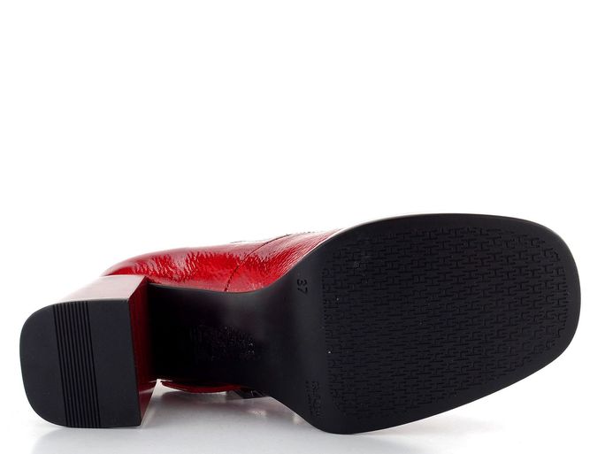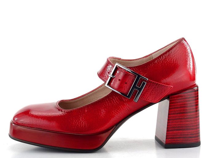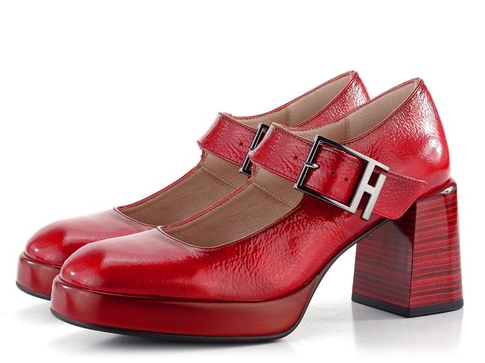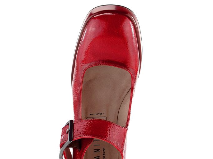 Luxusní dámské lodičky značky Hispanitas nabízejí jedinečný módní zážitek. Svršek je vyroben z lakované kůže v nádherném odstínu sytě červené barvy se stínováním. Tyto lodičky mají karé špičku a zdobí je kovová sponka v tmavě stříbrné barvě. Uvnitř najdete částečně textilní a syntetickou podšívku, která je veganská. Extra měkká kožená stélka s technologií TRIFLOW® poskytuje chůzi jako na gelovém polštářku, což zajišťuje výjimečné odpružení pro celodenní pohodlí. Lodičky mají vyšší podpatek se stínováním, který dokonale ladí se svrškem, a vyšší podešev s mírnou platformou. Tento model je ideální volbou pro podzimní a zimní sezónu, kdy chcete vypadat stylově a cítit se pohodlně.