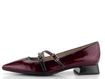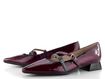 Luxusní dámské lakované lodičky na nízkém podpatku, s elegantní úzkou špičkou a nártovými pásky.