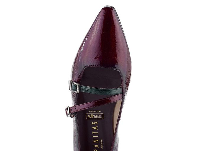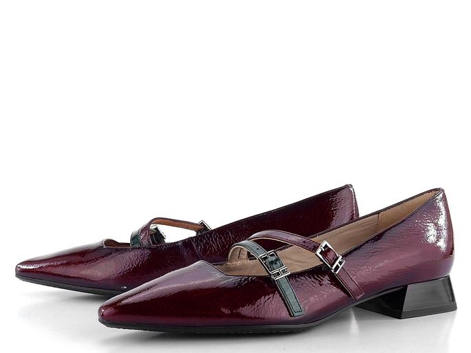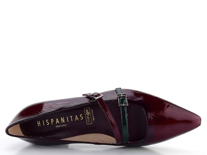 Elegantní a stylové lodičky ve vínové barvě od značky Hispanitas jsou ideální volbou pro podzimní a zimní sezónu. Tyto boty jsou vyrobeny z jemně mačkané, lakované kůže, která dodává sofistikovaný vzhled. Špičatý střih a tmavě zelené nártové pásky s délkovou regulací a pruženkou zajišťují dokonalé přizpůsobení a pohodlí.