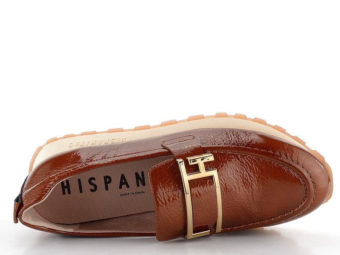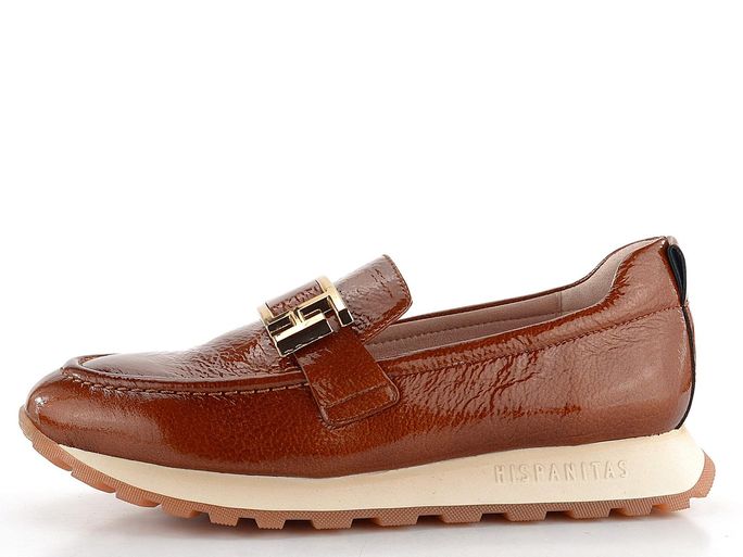 Sportovní mokasíny pro ženy od značky Hispanitas přinášejí moderní styl a komfort. Tyto mokasíny z lakované kůže v nádherném odstínu měděné hnědé barvy jsou ideální pro podzimní a zimní sezónu. Vyznačují se prostorným střihem a nártem zdobeným páskem s blyštivou sponou. Vyvýšený patní lem zajišťuje optimální pohodlí. Uvnitř najdete odolnou a ekologickou (vegan) podšívku z umělého mikrovlákna s termoregulační funkcí. Díky měkké vyjímatelné stélce s technologií TRIFLOW®, která poskytuje výjimečné odpružení, budete mít pocit chůze jako na gelovém polštářku. Vyšší sportovní latexová podešev a lepený výrobní způsob dodávají těmto mokasínám sportovní šmrnc. S podpatkem vysokým 3 cm jsou tyto mokasíny perfektní volbou pro celodenní nošení ve městě, v kanceláři nebo na lehkou procházku.