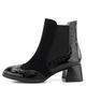 Luxusní dámský kotník bez vnitřního vyteplení z kombinace materiálů v černé barvě a s pruženkami po obou stranách.
