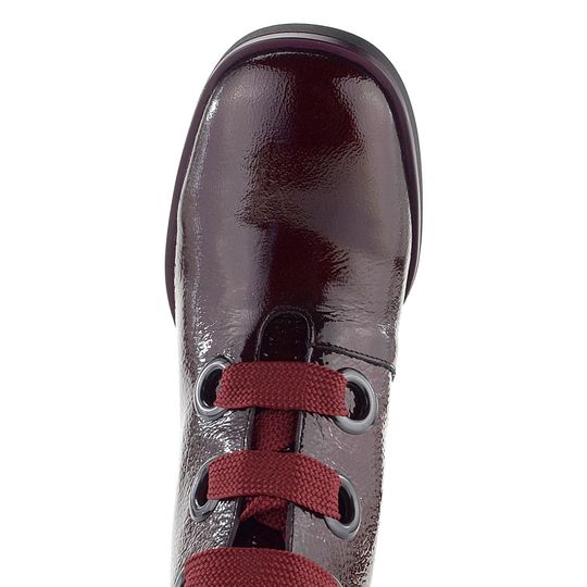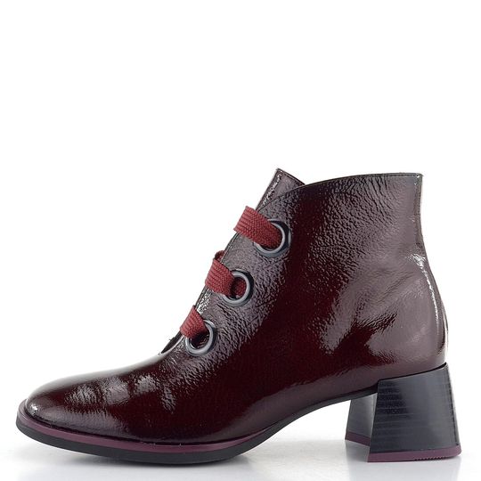 Luxusní dámský kotníček značky Hispanitas v nádherné vínové barvě je dokonalou volbou pro podzimní a zimní sezónu. Tyto boty se pyšní elegantním střihem s kulatou špičkou a svrškem z strukturované lakované kůže, která dodává jemný perleťový lesk. Šněrovací model s módními kovovými oky a širokými tkanicemi zajišťuje perfektní přizpůsobení. Vnitřní podšívka ze speciálního technického mikrovlákna je veganská, ekologická, 100% prodyšná a termoregulační. Měkká stélka s technologií TRIFLOW® poskytuje komfortní chůzi díky třem polstrovaným vrstvám. Pevnější syntetická podešev se širokým lakovaným podpatkem o výšce 5 cm zajišťuje stabilitu a pohodlí. Výška kotníku je 11,5 cm (bez podpatku). Tento model je ideální volbou pro ženy, které hledají styl, kvalitu a pohodlí v jednom.