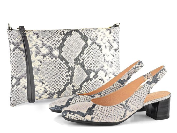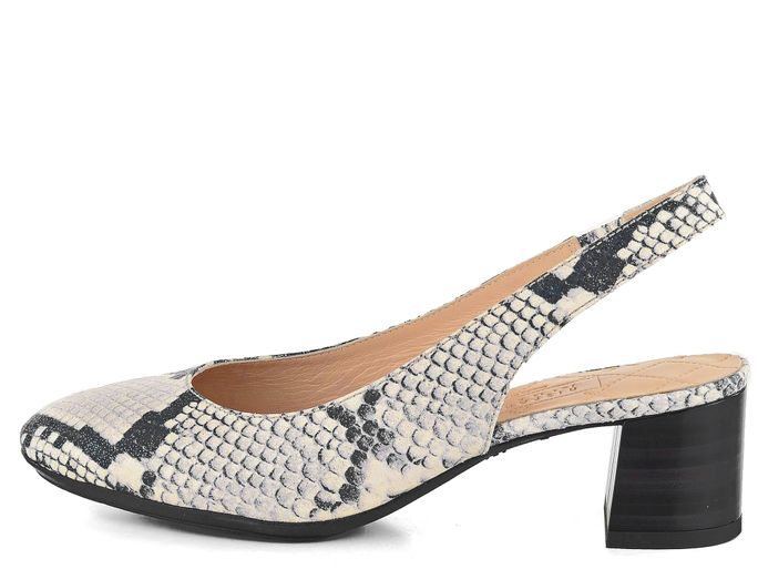 Dámské lodičky s hadinkovým vzorem na širokém podpatku s latexovou podešví.