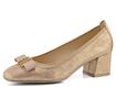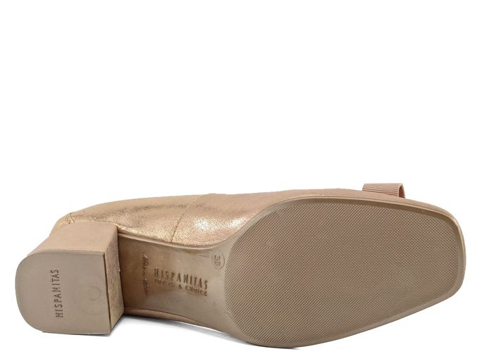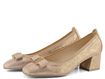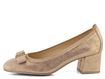 Dámské luxusní lodičky v metalické platinové barvě s výraznou mašlí a na potaženém, špalkovitém podpatku.