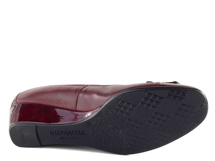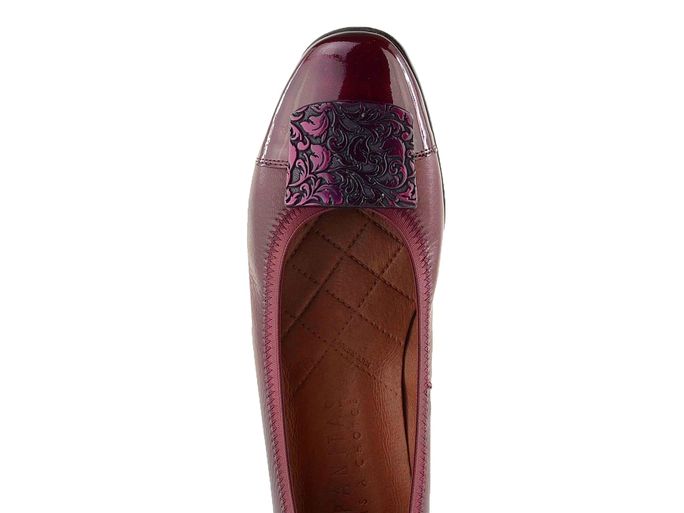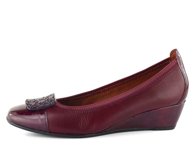 Dámské luxusní lodičky ve vínové barvě, s módní sponou a na potaženém lakovaném klínku.