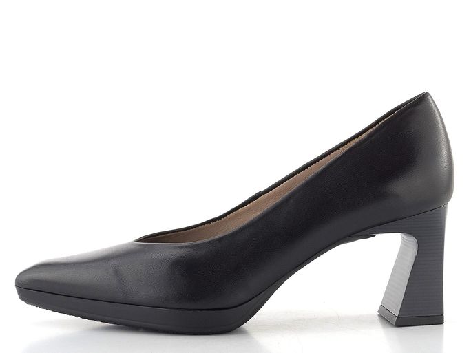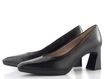 Dámské lodičky z hladké kůže v černé barvě, s elegantní úzkou špičkou a stabilním širokým podpatkem.