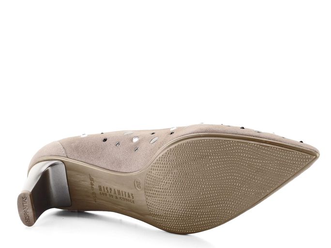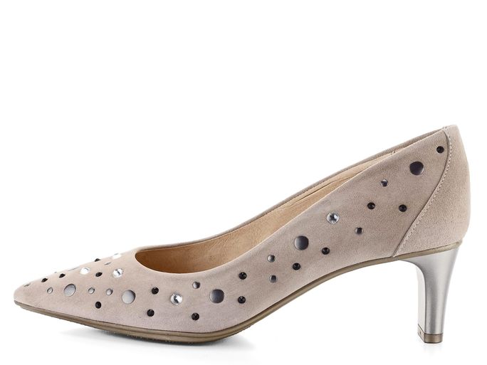 Jednoduchá elegantní linie dámských lodiček je umocněna módním špičatým střihem s ozdobnými kamínky a nýtky.