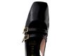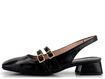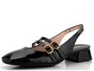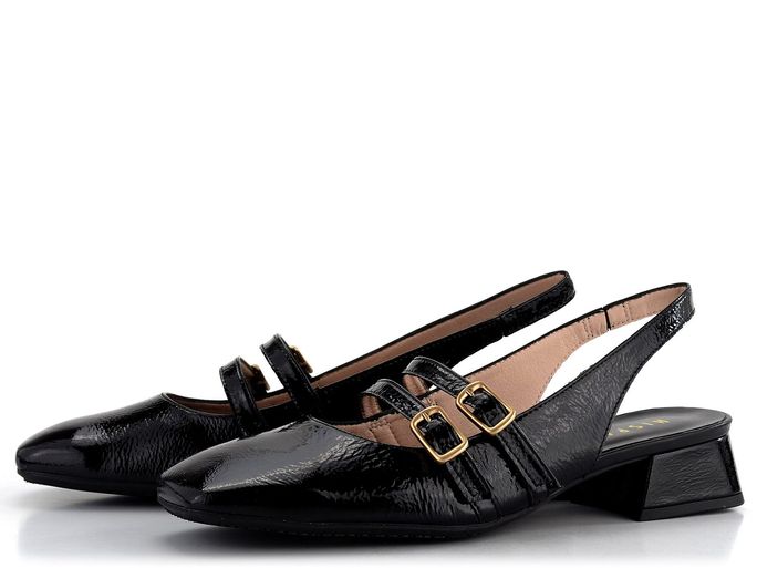 Elegantní kožené lakované lodičky s nártovými pásky, volnou patou a širokým podpatkem.