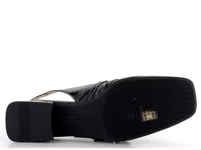 Elegantní a pohodlné lodičky s nártovými pásky od značky Hispanitas jsou ideální volbou pro ženy, které hledají stylovou obuv pro jaro a léto. Tyto lodičky v černé barvě mají svršek z mačkané lakované kůže a nastavitelné nártové pásky našité na pružence, což zajišťuje perfektní padnutí. Patní pásek se všitou pruženkou poskytuje další stabilitu.